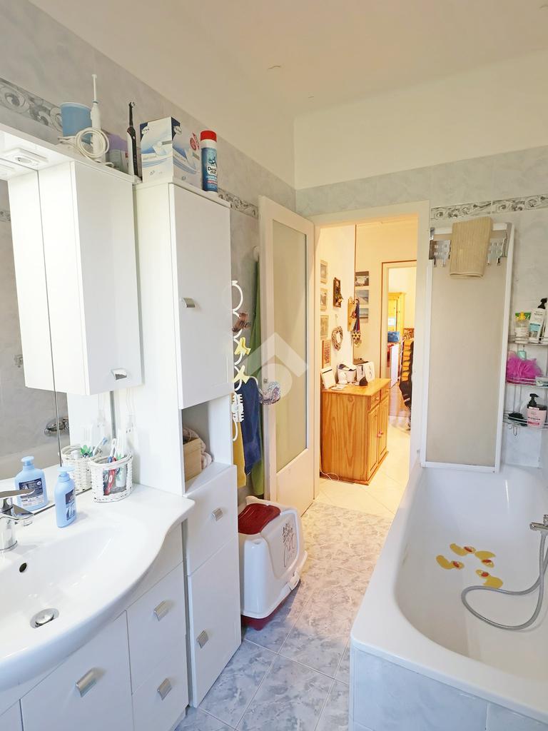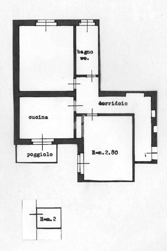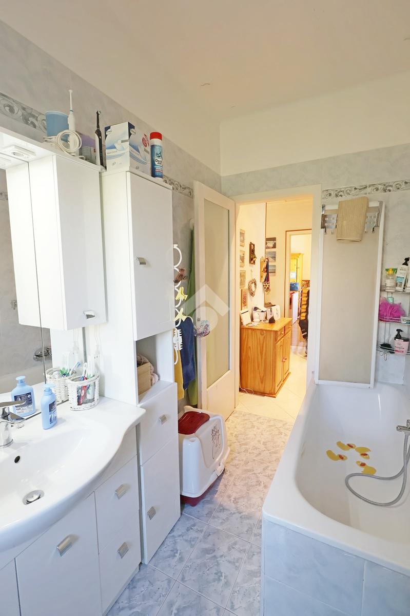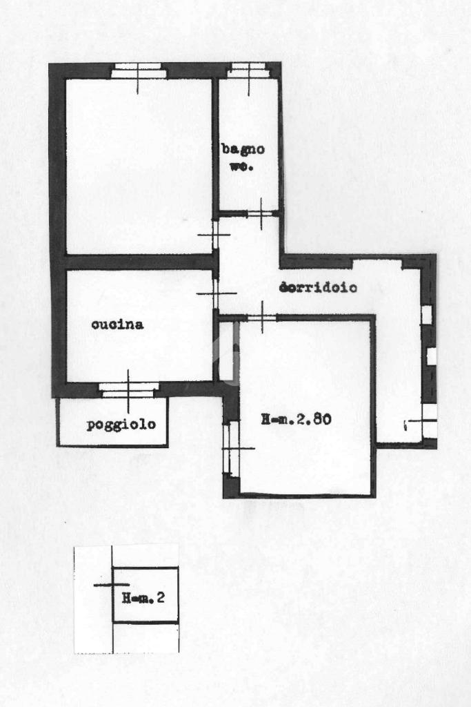 L'immobile si compone di ingresso, corridoio che collega la zona giorno con la zona notte, cucina abitabile con accesso diretto al poggiolo esposto a sud, due vani di notevole metratura, attualmente adibilti a camere matrimoniali, (all'esigenza uno dei due potrebbe essere utilizzato come zona giorno) e bagno completo finestrato con vasca.