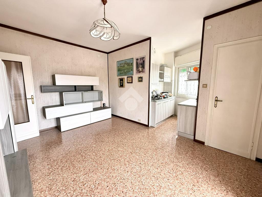L’appartamento, in buone condizioni interne, si compone di atrio d’ingresso, soggiorno con lato cottura e accesso a un poggiolo di circa 5 mq, ripostiglio, camera matrimoniale, camera singola e bagno finestrato.