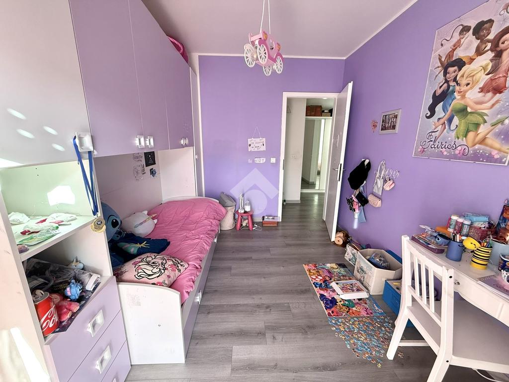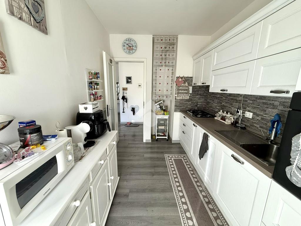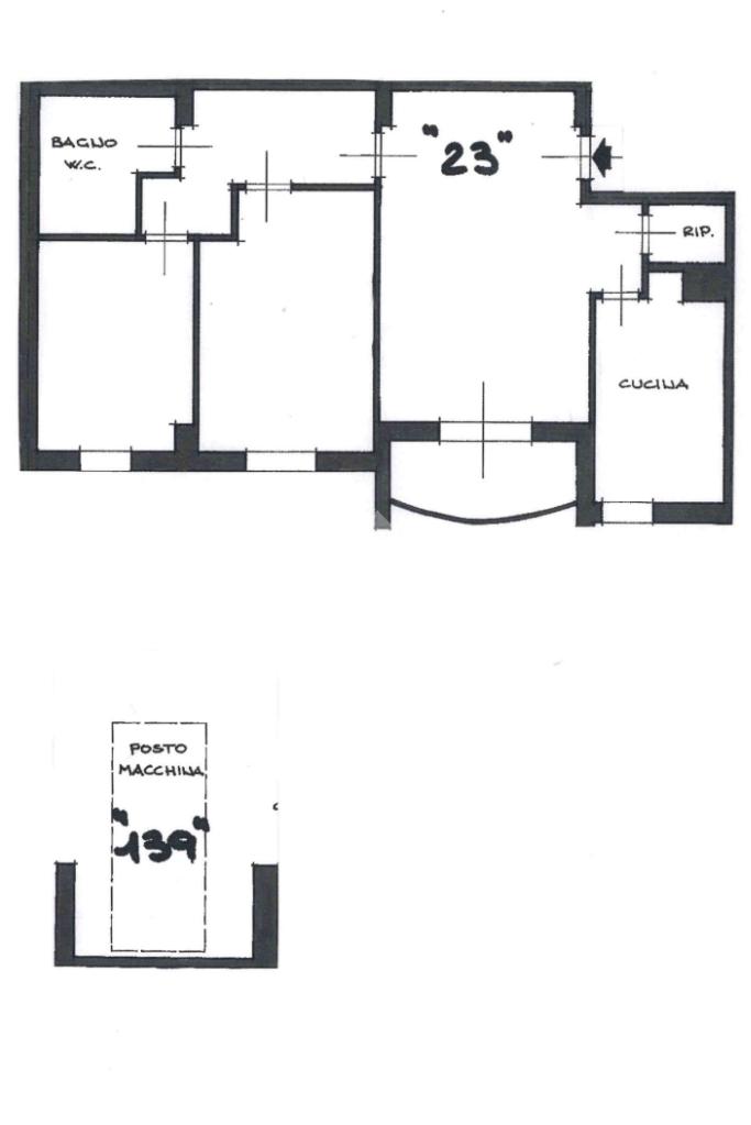 Ingresso che si apre sull'ampia zona giorno con accesso ad un poggiolo di circa 5 mq, cucina semiabitabile, comodo ripostiglio, camera matrimoniale, camera doppia di 11 mq e bagno con la doccia.