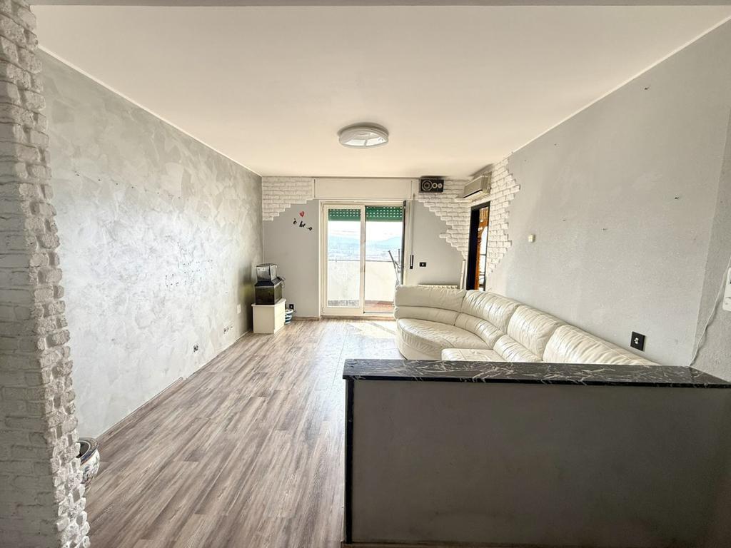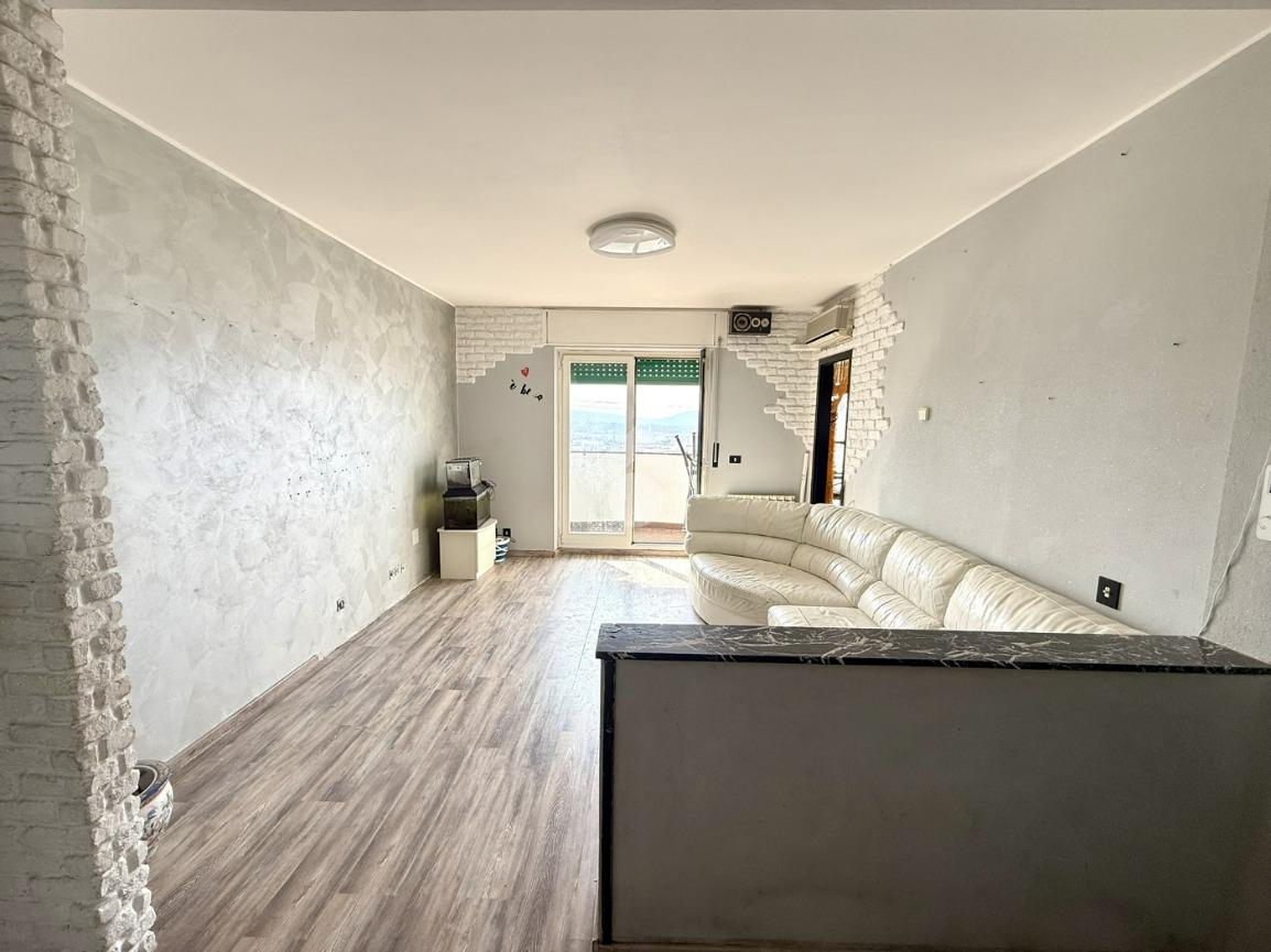 Ingresso nel soggiorno dal quale si accede al poggiolo di circa 4,5 mq, cucina semi-abitabile, comodo ripostiglio, camera matrimoniale, camera singola e bagno cieco completo con la doccia.